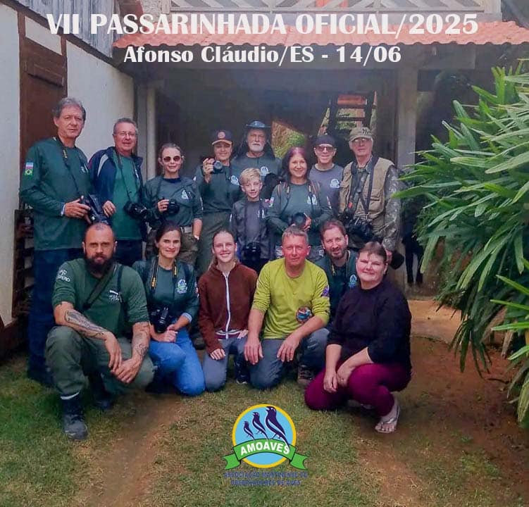 A diretoria da AMOAVES prepara para o dia 23 de julho, uma quarta-feira, a próxima Passarinhada Oficial (do Calendário Adicional) que possibilita a participação de associados com pouca disponibilidade de tempo nos finais de semana, em função de suas atividades profissionais. Será na Reserva Águia Branca, em Vargem Alta, na parte da manhã, e na Fazenda Veneto (residência do associado Rogério Truglio), à tarde.