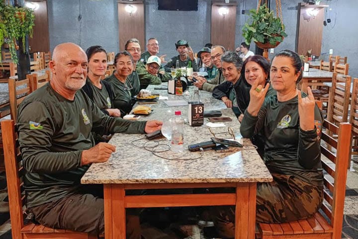 A brincadeira já virou tradição no grupo AMOAVES. Toda vez que se encontra uma porteira no caminho, alguém do primeiro carro desce para abrir e dar passagem aos demais. Os integrantes dos carros que passam agradecem com uma moeda. Desta vez, o “menino da porteira” foi o guia Brener Fabres, que também se divertiu com a brincadeira.