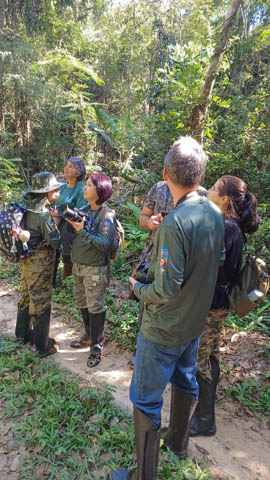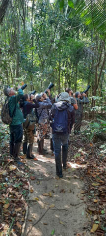 Às 5h da manhã, todos já estavam de pé, alguns já degustando o fabuloso café da manhã preparado pela equipe do Hotel Eliz. Nas conversas era possível identificar o desejo de todos: encontrar o Surucuá-de-coleira, ave rara, cujos registros no Estado do Espírito Santo foram, quase todos, feitos na Reserva Natural Vale.
