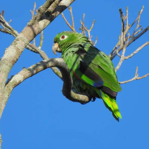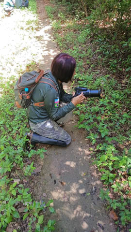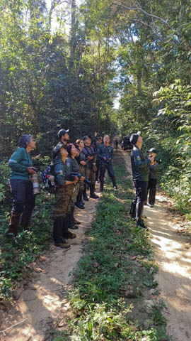 Já na Reserva e devidamente orientados e protegidos com perneiras e repelentes contra insetos, aracnídeos e outras criaturas prováveis de serem encontradas, os primeiros registros foram efetuados logo na entrada, entre eles mariquita, papagaio-moleiro, tiriba-grande, tiriba-de-orelha-branca e urubuzinho.