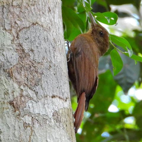 O período da manhã ainda reservava um encontro com outra espécie linda, o urutau-grande, também conhecido como mãe-da-lua-gigante, mãe-da-lua, urutau-gigante ou simplesmente urutau. É a maior espécie da família e mede entre 45 e 57 centímetros de comprimento. Na Reserva Natural Vale, ela habita o mesmo local, a mesma árvore, sendo fácil localizá-la e fotografá-la. E nada do surucuá-de-coleira…
