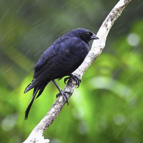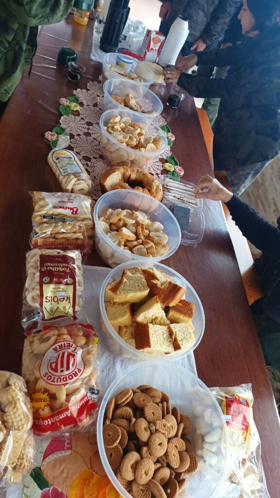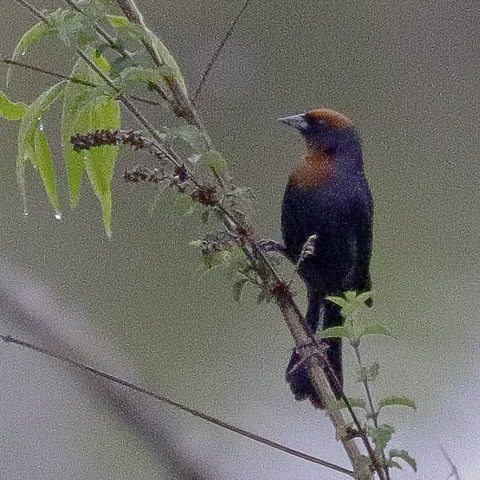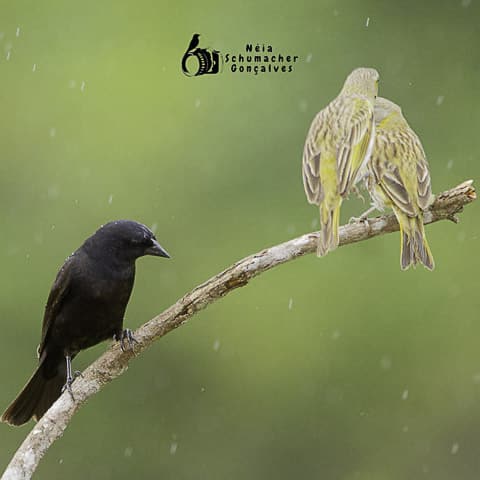 Já no sítio do Lázaro, o grupo foi recebido com um delicioso café da manhã, gentilmente preparado por sua esposa Nete e pela filha Malu. E, entre um gole de café e um pedaço de bolo, a maioria dos observadores fez o primeiro lifer do dia: chupim-azeviche. Um pequeno bando chegou ao comedouro e, mesmo com a chuva fina que caía, eles permaneceram por vários minutos, permitindo até mais um lindo vídeo de um deles cantando, feito pela Leidemara Busato, especialista nessa arte.
