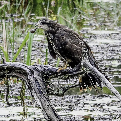E, novamente na estrada, foi inevitável parar na lagoa para novas fotos dos gaviões-caramujeiros, que agora se revelavam ainda mais bonitos, contrastando a plumagem com o verde da vegetação e o céu refletido na água. Agitados e muitas vezes provocando um ao outro, essas ações permitiram novas fotos ainda mais bonitas do que na véspera.